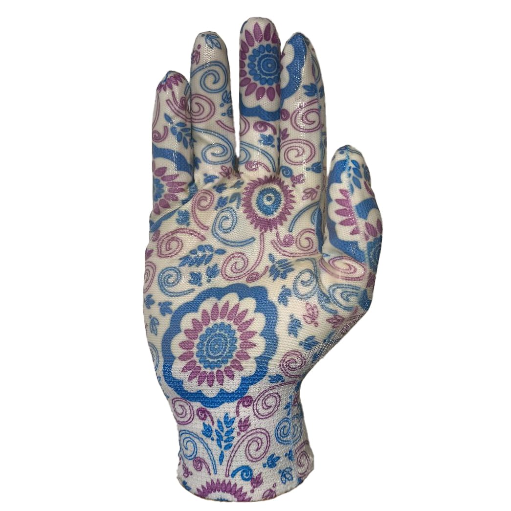 Рукавички для садово-городніх робіт Добра господарочка з нітриловим покриттям, білі "Абстракція", розмір М